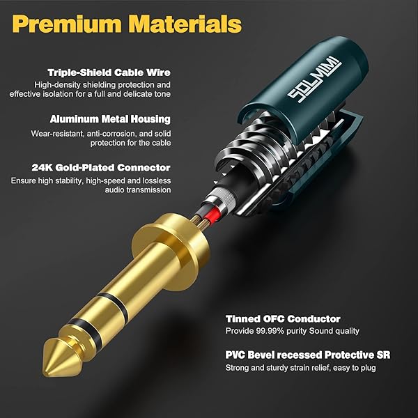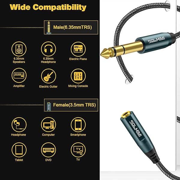 - SOLMIMI 1/4 to 3.5mm Headphone Jack Adapter (2-Pack), TRS 6.35mm Male to 3.5mm Female Stereo Audio Adapter Cable for Headphone, Speaker, Mixer, Guitar Amplifier, Piano, Keyboard - 1FT with reliable performance and quality- SOLMIMI Audio Adapter - This 1/4 to 3.5mm adapter cable is TRS 6.35mm male plug to a 3.5mm female jack audio adapter cable, for transfering audio between smartphones, tablets, or headphones with standard 3.5mm plugs and audio devices with a 6.35mm stereo jack, s