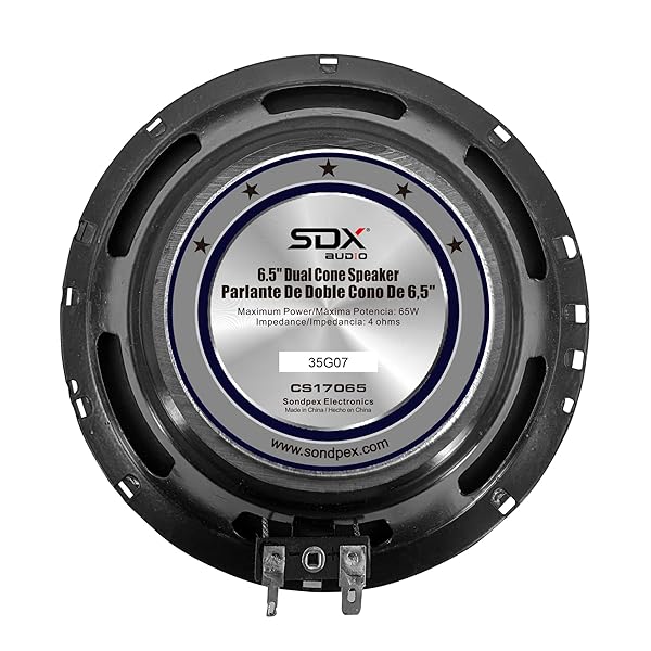 * Sondpex CS17065: 6.5 Dual Cone Speaker: maximum output power: 65w * Impedance: 4 ohms * Sensitivity: 88 dB/w/m * Frequency Range: 92-15KHz * Original Equipment Replacement