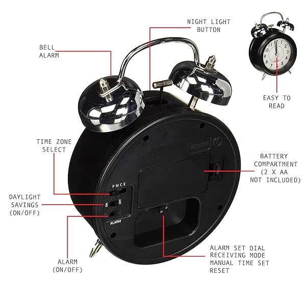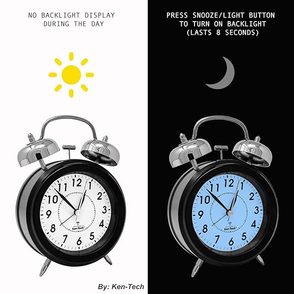 - Sonnet SONNET-T-4678 Twin Bell Alarm Clock - Very Loud for Heavy Sleepers and Hearing Impaired - Battery Operated Blue Backlight - for Teens and Senior Citizens, 3/8 Digits, Black: reliable performance and quality- Loudest Alarm - For deep sleepers, kids, the elderly,- Decorate Your Home - Classic Vintage Design! This- Enjoy The Silence! - No Ticking! This Super Silent- Easy to Read - 4" Clock Diameter and 3/8" prominent