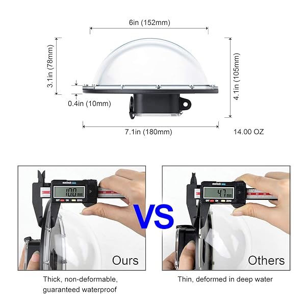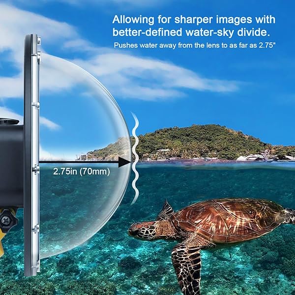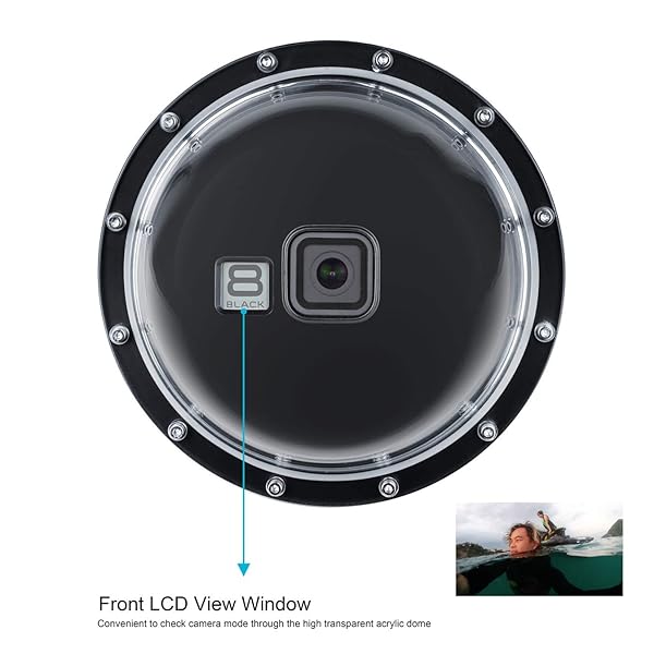 - SOONSUN Dome Port for GoPro Hero 8 Black, 147 Feet Underwater Dome Lens with Waterproof Housing Case, Floating Hand Grip, Trigger for Underwater Photography offers reliable performance and quality- 50/50 Water and Sky Photography: Moving along the water surface reference line on the dome, making it possible to capture images both above and below the water simultaneously, which allows you to capture what's above and below the surface all in one shot