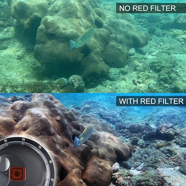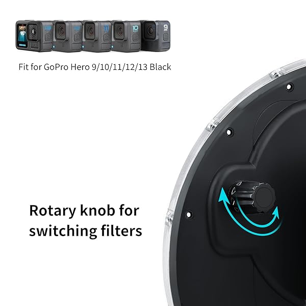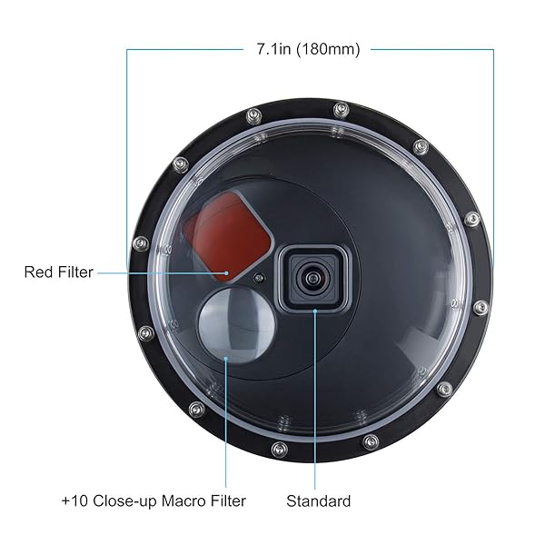 * SOONSUN Dome Port for GoPro Hero 9 10 11 12 13 Black, Underwater Dome Lens with Waterproof Housing Case Built-in Switchable Red Filter, 10x Close-up Macro Filter and Standard Mode: 50/50 water and sky photography: moving along the water reference line on the dome * Making it possible to capture images both above and below the water simultaneously * Which allows you to capture what's above and below the surface all in one shot * Built-in Switchable Filters: 10x close-up macro filter for