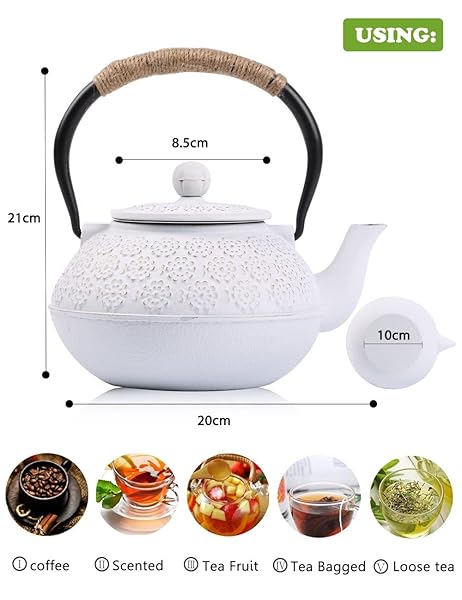 - Sotya Cast Iron Teapot, 40oz/1200ml Japanese Tetsubin Tea Pot with Infuser for Loose Leaf and Tea Bags, Tea Kettle Coated with Enameled Interior for Stove Top, White offers reliable performance and quality