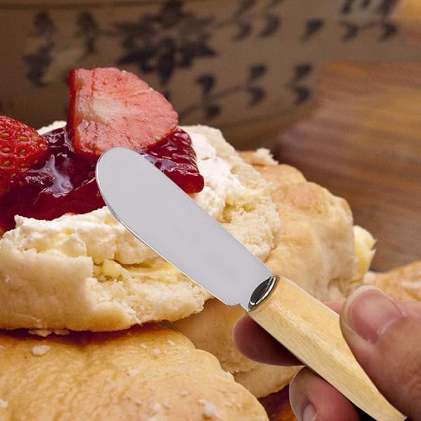 - SourceTon 10-Pack Wood Handle Butter Spreader, 4 Inch, Sandwich Cream Cheese Condiment Knives with Ergonomic Handle offers reliable performance and quality- HIGH QUALITY- Our butter spreader is design with a stainless steel blade and a original wood handle, which is firm, for comfortable grip and elegant presentation- SIZE- 4 inch Long in total. The blade is measured 2.2 inch long