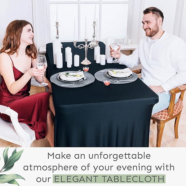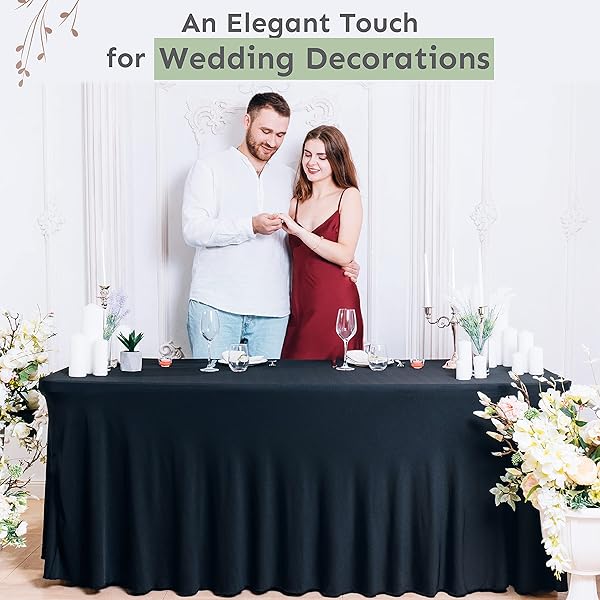 * Table Skirt for Rectangular Tables 6ft - Spandex TableCovers for Standard 6 Foot Table - One Piece Fitted Elastic Tablecloth - Wrinkle Resistant Ruffles Design for Weddings, Party, Events (Black): unique spandex tablecloths with perfect fitting are the best choice to fulfill all your indoor and outdoor table decoration needs * Transform your tables into elegant party tablescapes by swathing with these spandex table covers 6ft * The ruffles add an elegant touch! Our 6-foot fitted tablecloth is