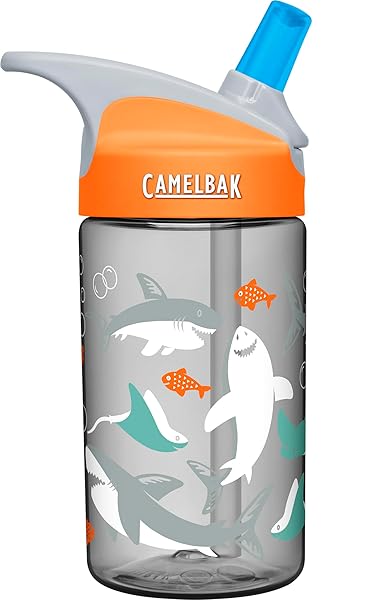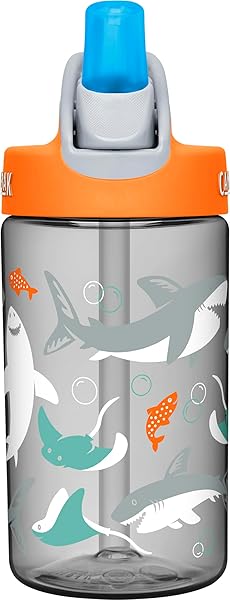 Spill-Proof CamelBak Eddy Kids Water Bottle 12oz - BPA-Free, Shark Design, Big Bite Valve
