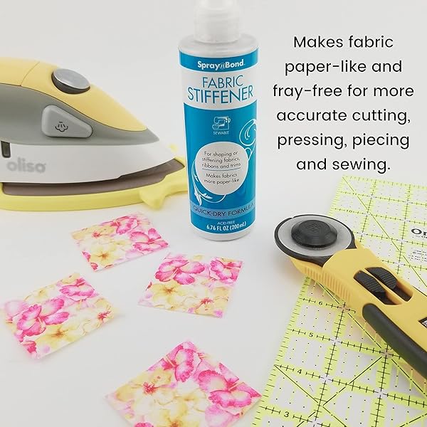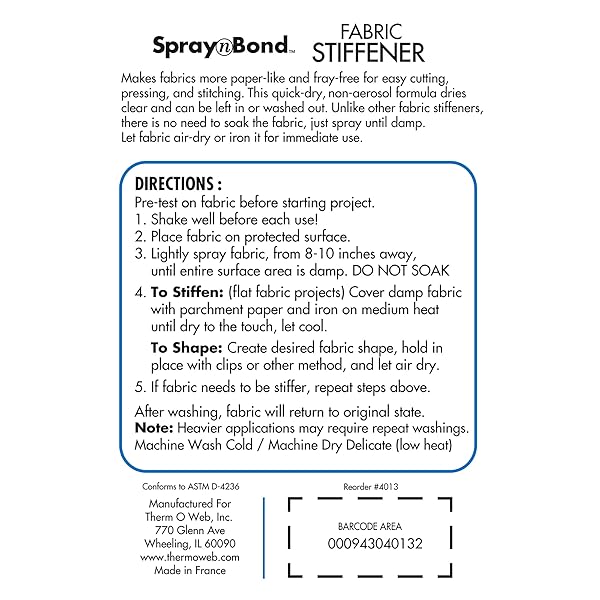 * SpraynBond Fabric Stiffener, 6.8 OZ (200mL): spraynbond fabric stiffener is a must-have for any fabric crafter! it makes fabrics more paper-like and fray-free for easy cutting * Pressing * And stitching * This quick-dry * Aerosol formula dries clear and can be left in or washed out depending on your needs