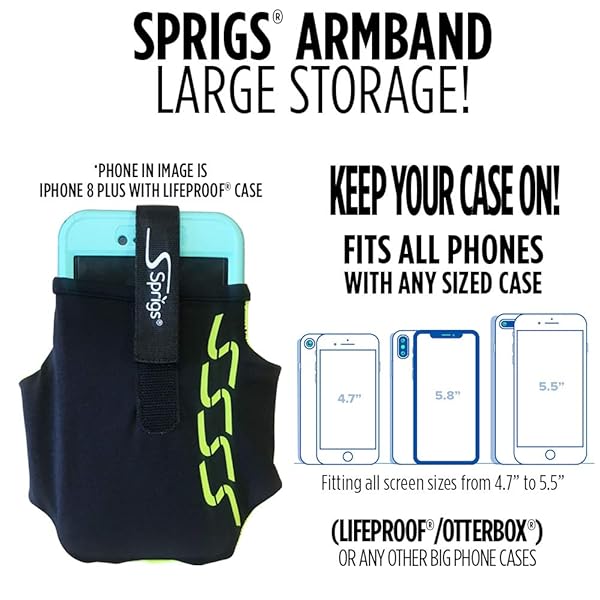 - Sprigs Armband for iPhone 11/x/xr/8/7 Plus, Galaxy S10/S9, Google Pixel 4. Lightweight & Comfortable Running Armband, Stretches to Fit All Phones with Case - Black Tie Dye, Small offers reliable performance and quality