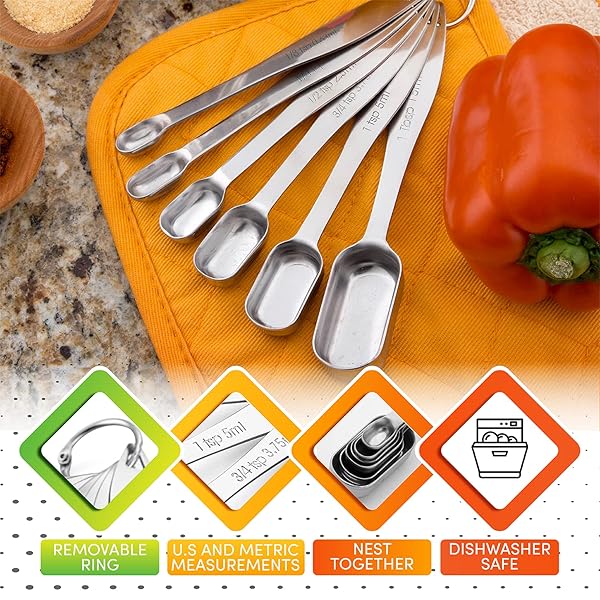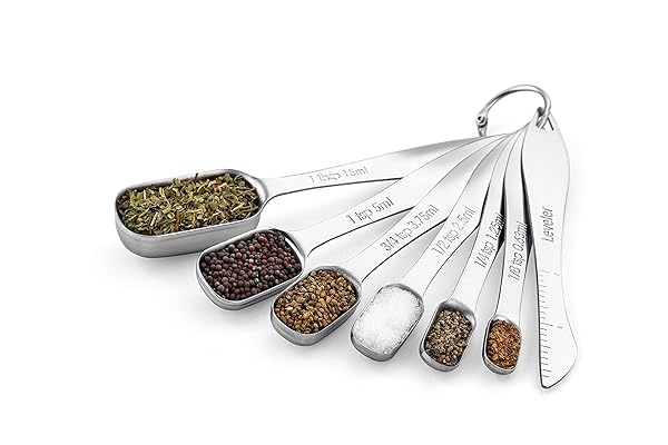 - Spring Chef Stainless Steel Measuring Spoons Set of 7 with Leveler, Rectangular Metal Teaspoon & Tablespoon Measuring Spoons for Dry & Liquid Ingredients - Nesting Kitchen Gadgets For Baking & Cooking offers reliable performance and quality- Complete, Accurate Set To Measure Spices, Medicine And More - Measure precise quantity of ingredients with these metal measuring spoons to get great results with cooking and baking