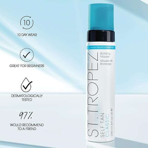 - St.Tropez Classic Bronzing Self Tan Mousse for Streak-Free, Golden Tinted, Natural-Looking Tan, 8 Fl Oz provides reliable performance and quality- THE ICONIC TAN: This classic bronzing mousse creates a long-lasting, medium golden tan. The lightweight and quick-drying formula adapts to your skin tone, giving you an effortless, natural glow in ...