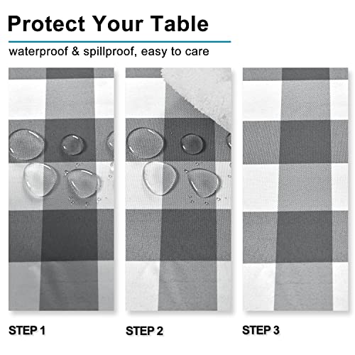 Stain Resistant Checkered Tablecloth - 54x54 Inch Waterproof Grey & White Gingham for Dining Room