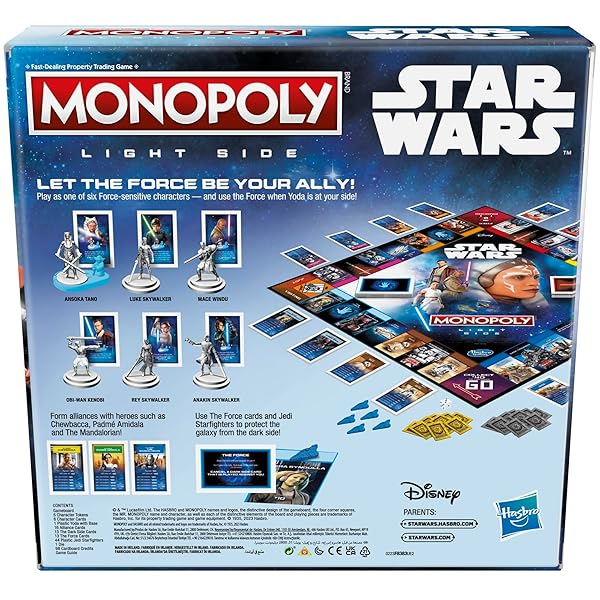 * Monopoly Hasbro Gaming Star Wars Light Side Edition Board Game for Families and Kids Ages 8 and Up, Star Wars Jedi Game for 2-6 Players, Medium: let the force be your ally! in this monopoly: star wars light side edition board game * Players form as many Rebel alliances as they can to protect the galaxy from evil! The more alliances formed * The more credits a player can collect from other players * Use Yoda and The Force cards for guidance * But beware the power of the dark side! Land on a