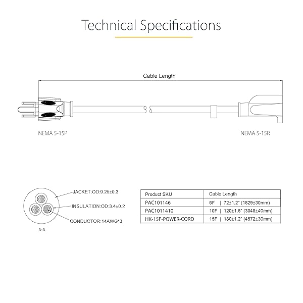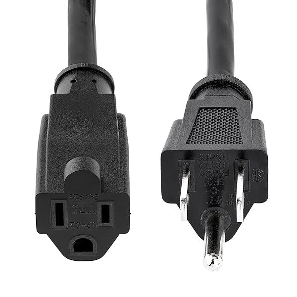 - StarTech.com 10ft (3m) Heavy Duty Extension Cord, NEMA 5-15R to NEMA 5-15P Black Extension Cord, 15A 125V, 14AWG, Heavy Gauge Power Extension Cable, Heavy Duty AC Power Cord, UL Listed (PAC1011410)...- HEAVY DUTY EXTENSION CABLE: This 10ft (3m) 14AWG universal power cord with NEMA 5-15R to NEMA 5-15P connectors is suitable for workstations/home office | Indoor use | Rated to carry 125V at 15A
