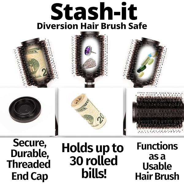 - Diversion Safe Hair Brush by Stash-it, Can Safe to Hide Money, Jewelry, or Valuables with Discreet Secret Removable Lid and, New Version offers reliable performance and quality- HIDE OR STORE YOUR VALUABLES: Secret false top unscrews to display hidden stash diversion safe. Stash away your stuff in a fully concealed safe that doubles as a hairbrush!