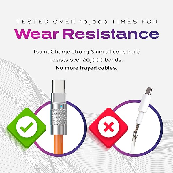 * Statik TsumoCharge 3 Pack USB C Cable to i-Product 27W Fast Charging Cable - Heavy-Duty Unbreakable Silicone, Supports Data Transfer Type C Cable, Cord Wrap Organizer Included, 6FT/2M, Orange 3 Pack: built to last: our innovative statik tsumocharge 100w usb c to usb c cable is almost indestructible * It is made from a new liquid silicone material which is surprisingly soft to the touch with built-in nylon wire to provide exceptional durability and flexibility to withstand more than 20,000
