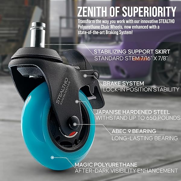- STEALTHO Chair Casters 5-Pack with 2 Locking Wheels | Heavy-Duty Office Rollers | Silent | Polyurethane Floor Safe | Standard Fit 7/16" x 7/8" | 600lb Load Capacity | Navy Blue offers reliable performance and quality- DUAL-BRAKE SYSTEM FOR ULTIMATE CONTROL: Smooth-rolling casters with 2 lockable wheels (of 5 total) - engage selective braking for rock-solid stability during standing work, intense gaming sessions, or detailed design tasks