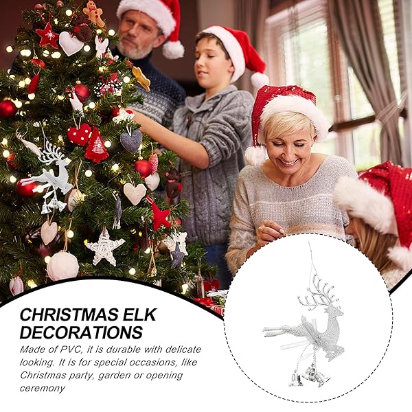 STOBOK 6pcs Christmas Tree Bell Ornaments - Silver Reindeer Hanging Decorations for Wall & Fireplace
