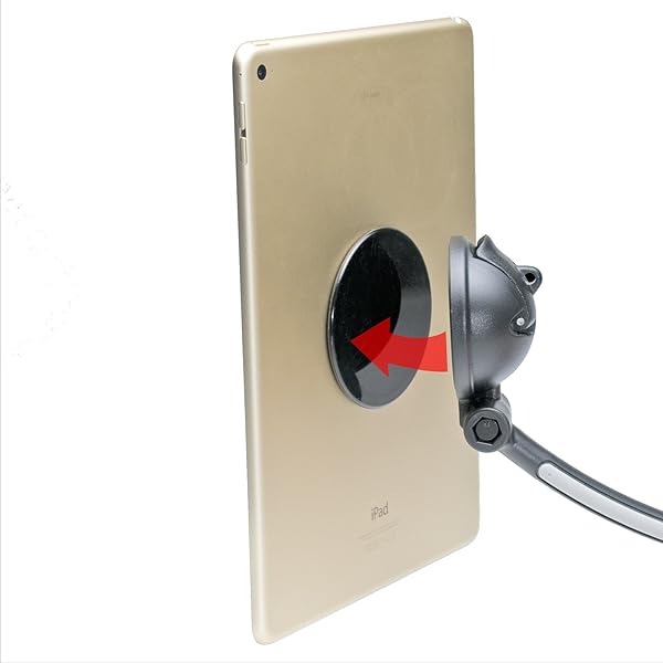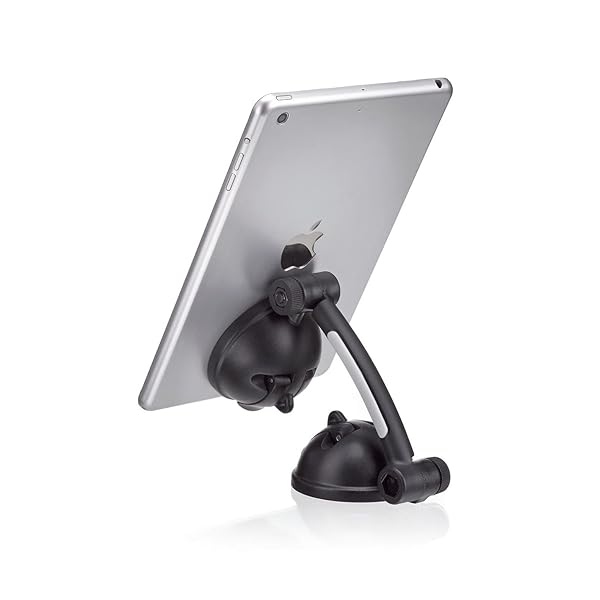 Strong Suction Mount Stand for Tablets & Smartphones - Theft Deterrent Lock & Adhesive Plate for Secure Desk & Wall Attachment