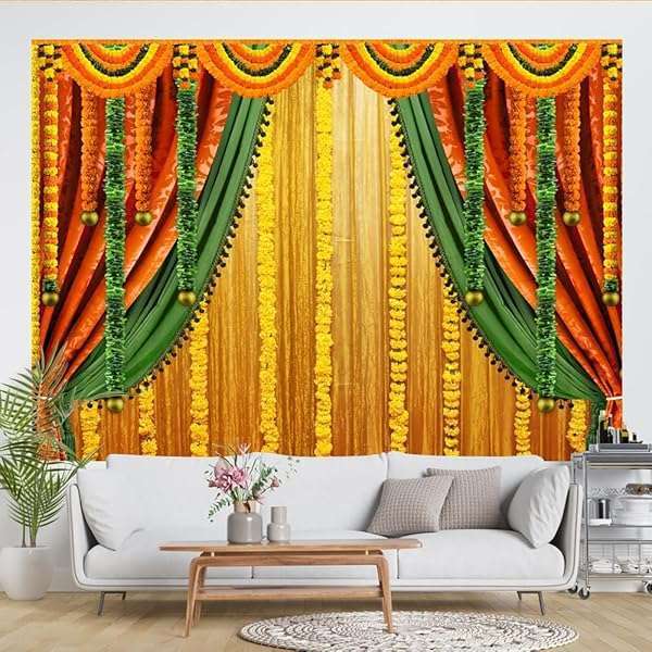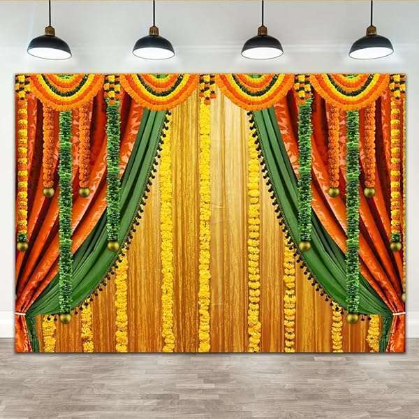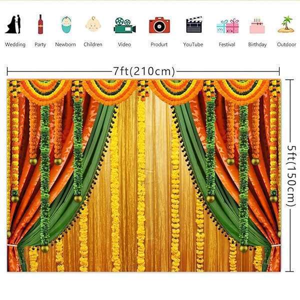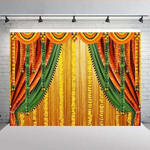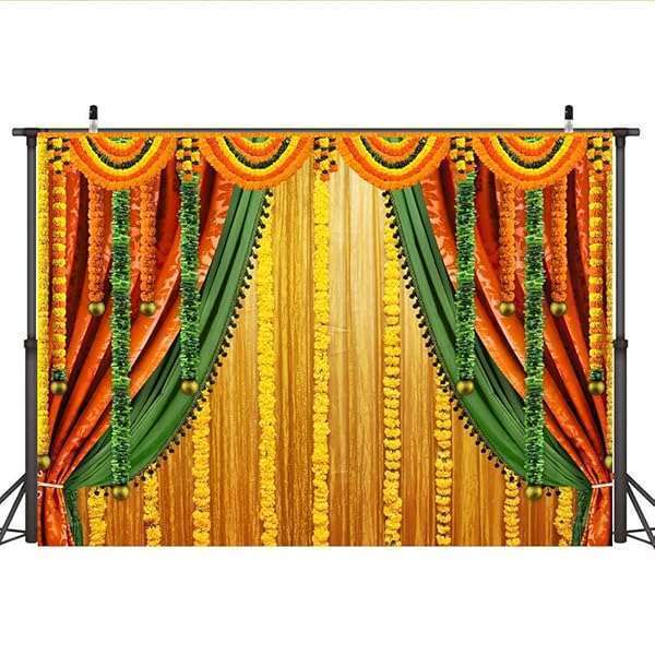 * Lofaris India Pooja Photography Backdrop Puja Ganpati Pooja Traditional Mehndi Festival Background Diwali Decorations Wedding Party Marigold Garlands Photo Props 7x5ft: material & package made of vinyl * Non-fading * Non-reflective matte * Strong light blocking * Only 1 Pc backdrop without stand or clips