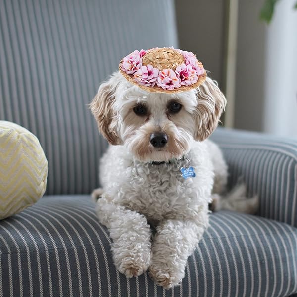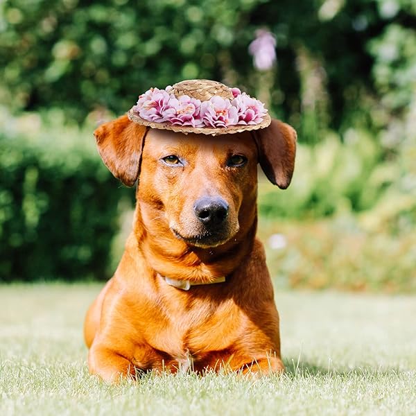 - POPETPOP Dog Sun Hat Pet Straw Hat : Summer Pet Sun Cap with Flowers and Adjustable Chin Strap for Photo Props, 11.5 x 11.5 x 4cm offers reliable performance and quality- Pet straw hat,Made from straw material, it is lightweight and safe for everyday pet use- Straw hat with flower decoration, unique and stylish, make your dog look more lovely and interesting- Suitable for pet as a sun hat or party costume accessory, photo prop, etc