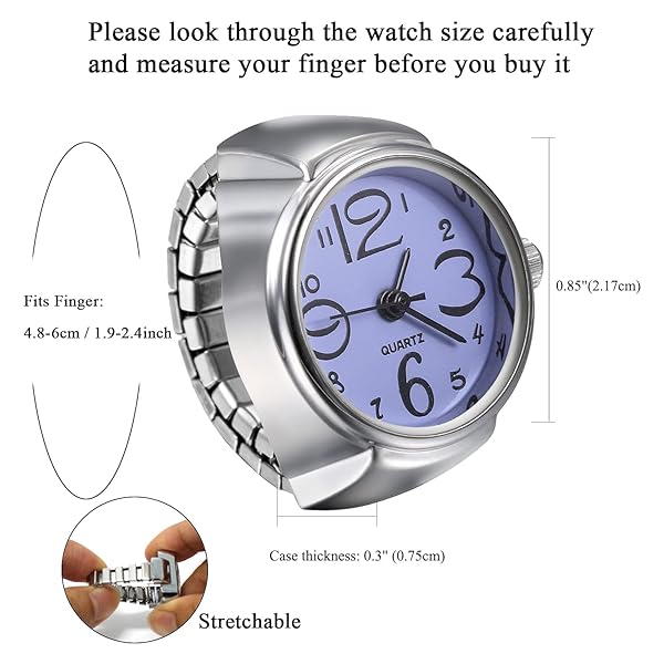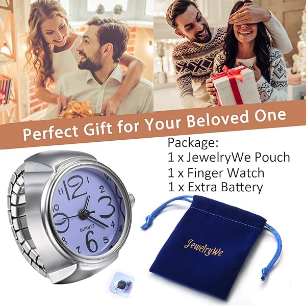 - JewelryWe Men Women Finger Watch Creative Elastic Round Quartz Finger Ring Watches offers reliable performance and quality- PRECISE TIME KEEPING -- Quartz movement and battery, provide accurate and constant time keeping. Simple dial with big numerals. Display time clearly. Easy-to-read. Tell time your way with this watch using clear dial and distinct hands
