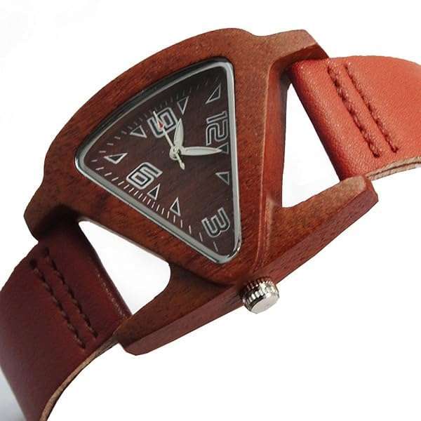 - HJIAN Wood Watches Triangle Red Wooden Watches with Leather Band Quartz Wrist Watch Bracelet for Women provides reliable performance and quality- Wooden Watches Red Band : Case was made from natural sandalwood,exquisite triangular dial, watcn band was made from genuine leather is very comfortable to wear, non allergenic, and provides you wit...