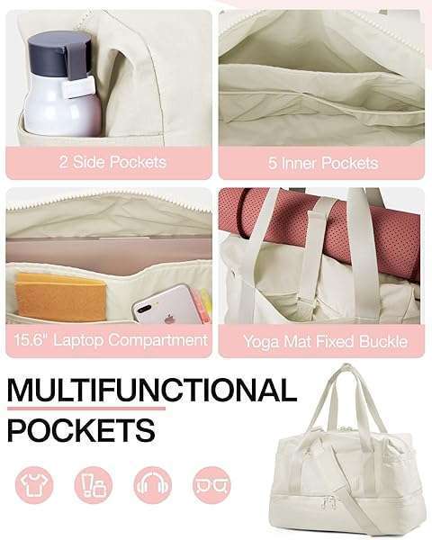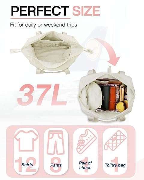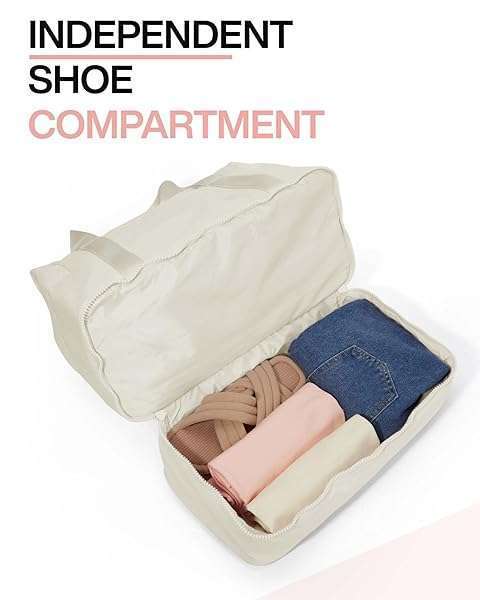 Weekender Bags for Women, BAGSMART Travel Duffel Bags with Shoe Compartment,Personal Item Travel Bag for Airlines, Carry on Overnight Tote Bag with Toiletry Bag (Light Beige,2pcs)