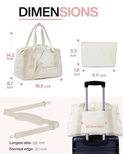 Stylish Weekender Bags for Women: BAGSMART Travel Duffel with Shoe Compartment & Toiletry Bag - Perfect Carry-On for Airlines