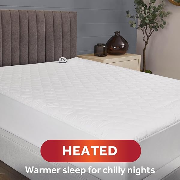 - Sunbeam Restful Quilted Water Resistant Heated Mattress Pad - Twin provides reliable performance and quality- USER-FRIENDLY DESIGN: Electric blanket with digital controller and LED backlit blue display for easy viewing at night- CUSTOMIZABLE WARMTH: 12 Heat settings allows you to select your ideal warmth heat level- SAFETY FIRST: 12-Hour selectable auto shut-off and overheat protection for added peace of mind