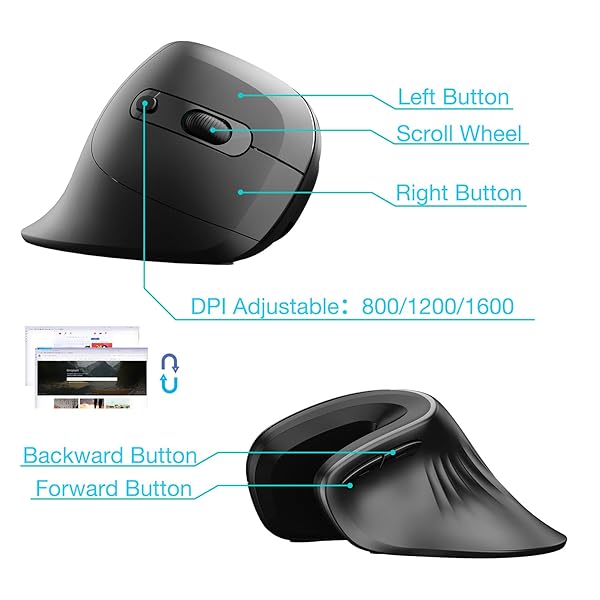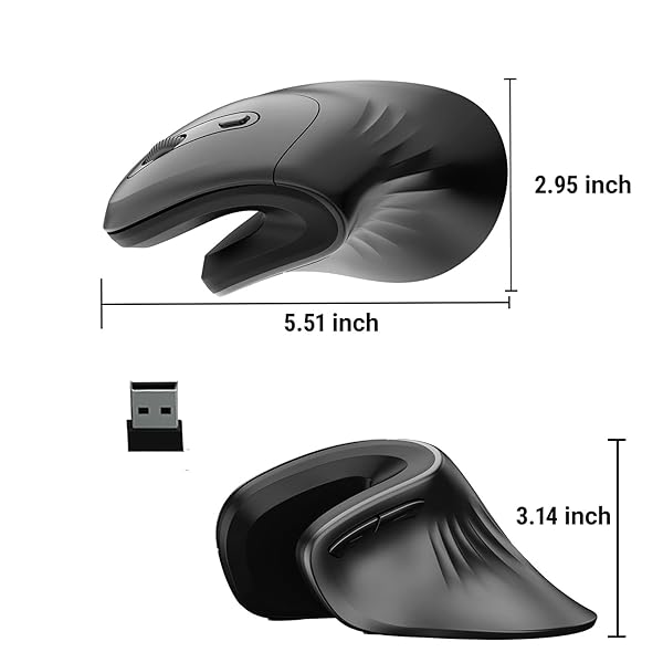* Sunffice Ergonomic Mouse, 2.4G Wireless Vertical Optical Mouse, Ergo Mouse High Precision Optical Mice with Adjustable 800/1200/1600 for Laptop, Desktop, PC, MacBook(Wireless Black): ergonomic designnote:the usb receiver is on the bottom of the mouse.exclusive 54 vertical angle encourages a healthy wrist and forearm posture which reduces muscle strain * So that your wrist and forearm smoother movement and less overall strain * The vertical mouse is designed for daily work and it makes work