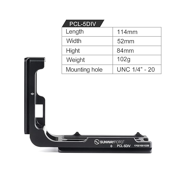 - Sunwayfoto PCL-5DIV QR L Plate for Canon 5D Mark IV Arca / RRS Compatible Sunway offers reliable performance and quality- Solid 1 Piece Metal Bracket for Rock Solid Stability- Custom Dedicated for Canon 5D Mark IV- Fully RRS Lever Clamp Compatible- Arca-Swiss compatible