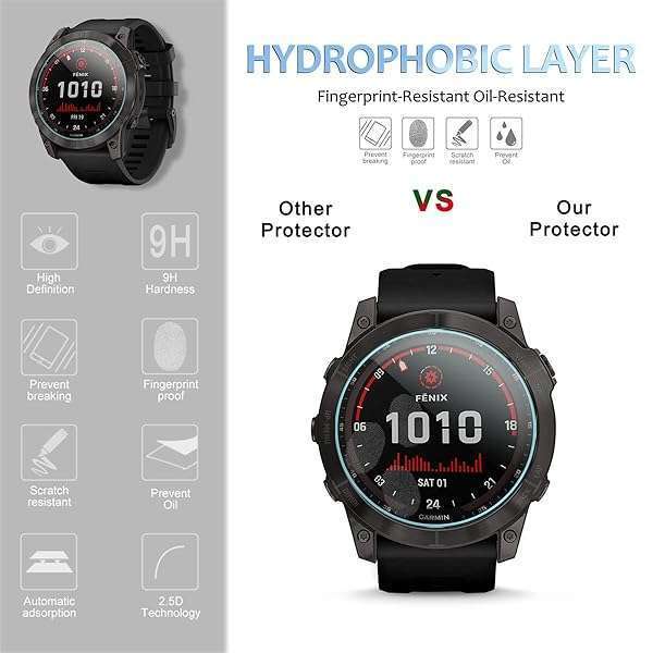 * Suoman 4-Pack Screen Protector for Garmin Fenix 8 51mm/ for Garmin Fenix 7X 51mm, [Anti-Scratch] 2.5D 9H Hardness Ultra-Thin Tempered Glass Screen Protective Film: compatible model very suitable for garmin fenix 8 51mm/ solar / amoled / fenix 7x /7x solar/sapphire solar 51mm * This tempered glass for Garmin Fenix 7X /Fenix 7X Sapphire Solar 51mm provides surface protection and can also be easily removed! * Product Material2.5D 9H Hardness Tempered Glass * Protect from accidental scuffs and