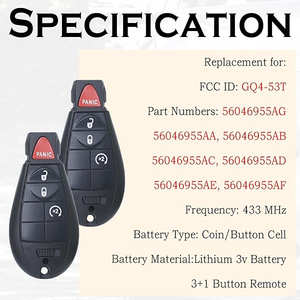 - SUPALAND Key Fob FOBIK Keyless Entry Remote Start Control Replacement Fits for Dodge Ram 1500 2500 3500 HD 2013 2014 2015 2016 2017 2018 2019 2020 2021 GQ4-53T 56046955 AG 4 Button Pack of 2 with reliable performance and quality- HIGH-QUALITY: Every Single Keyless Entry Remote Start Control Car Key Fob is Fully Pre-tested by Professional Locksmith Tools before Shipping. All Our Key Fobs are Pre-installed with Battery and Electronics.- COMPATIBILITY: Compatible with FCC ID G