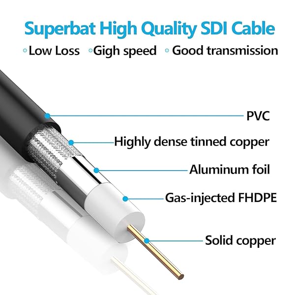 - Superbat 3G 6G SDI Cable 6ft Right Angle BNC Male to Male Belden 1855A Cable 75 Ohm Thin Short Camera Wire for HD SDI Converter Camera CCTV Monitor Video Switcher Splitter etc 2-Pack with reliable performance and quality- 3G 6G HD SDI Cable,75 Ohm BNC Male to Right Angle BNC Male SDI Video Cable Belden 1855A Coaxial Cable 6ft/200cm (2-Pack).- Right Angle SDI Connector Design: This SDI cable has a 90right-angle connector on one end, making it easy to make a secure connection