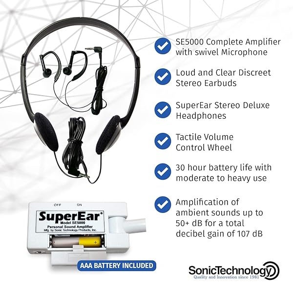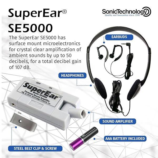 - SuperEar Model SE5000 (PSAP) for Seniors - Hearing Amplifiers for Seniors, Super Ear Personal Sound Amplifier, Sound Amplifier Listening Device and Audio Accessories in 50dB Ambient Sounds Increase offers reliable performance and quality- COMPATIBILITY: Response to sound amplification is completely dependent on an individual's unique ability to detect sounds. For this reason, a PSAP may or may not work for an individual depending on their individual need