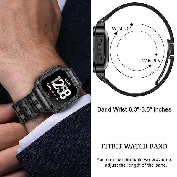 * SUPLINK Stainless Steel Case & Band Compatible with Fitbit Versa 4/3/2 Bands, Protector Cover Strap for Fitbit Sense/Versa Lite Bands, Black: compatible fitbit watch modelsuplink watch case/band is compatible with fitbit versa 4(2022)/fitbit versa 3/fitbit versa 2/fitbit versa/fitbit versa lite/fitbit sense 2(2022)/fitbit sense(2020) * Strap is suitable for wrist size 6.2"-8.8" * The fitbit versa 2 bands can be adjusted at any time to perfectly fit your wrist.(Watch Not Included) * Premium