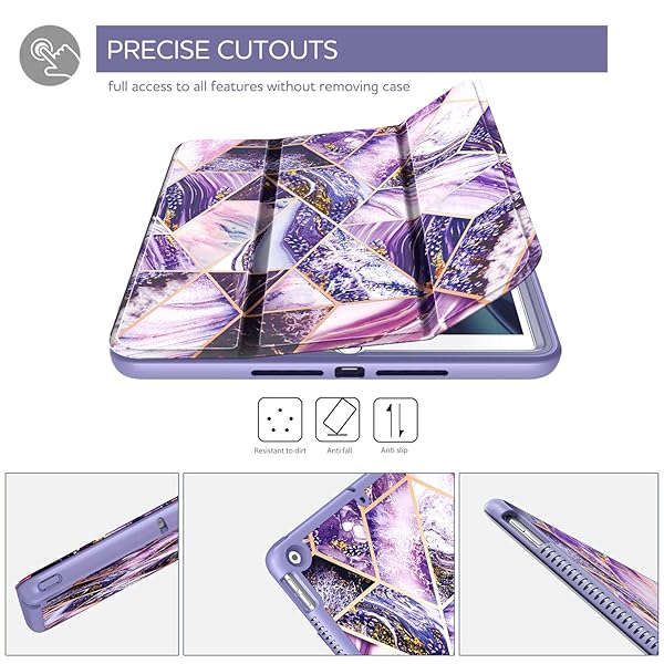 Suritch iPad 9th/8th/7th Gen Case with Screen Protector & Pencil Holder - Lightweight Leather Smart Cover in Purple Marble