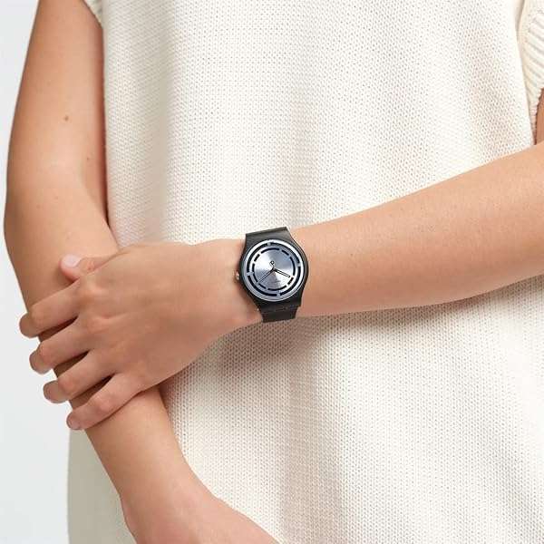 - Swatch New Gent Bioceramic Unisex Watch Casual Bioceramic Black Quartz Waterproof Circled Lines provides reliable performance and quality- Collection: NEW GENT BIOCERAMIC STANDARD- Watch Size: 41mm round plastic case with push/pull crown- Water Resistance: 100 Feet- 2 Year International Warranty