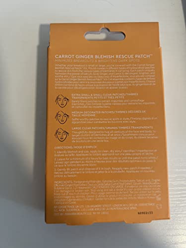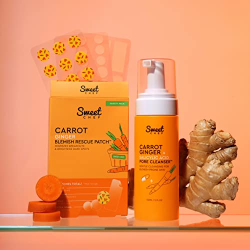 * Sweet Chef Carrot Ginger Rescue Blemish Patches - Hydrocolloid Bandages Spot Treatment - 4 Different Shape and Size Pimple Patches with Resurfacing Carrot & Brightening Ginger (36 Patches): brightening ginger: contains ginger to brighten skin and reduce blemishes * Moisturizing Hydrocolloid: Hydrocolloid bandages provide moisture to the skin * Exfoliating Carrot: Carrot extracts help remove dead skin cells * Blemish Treatment: Patches help treat acne and blemishes * Provides Vitamins and