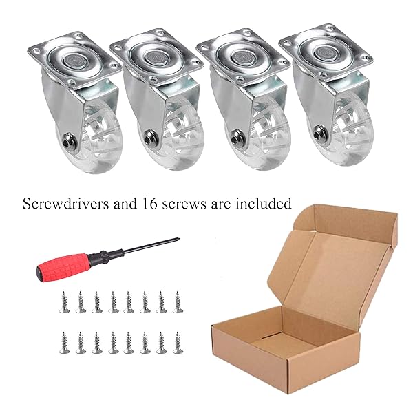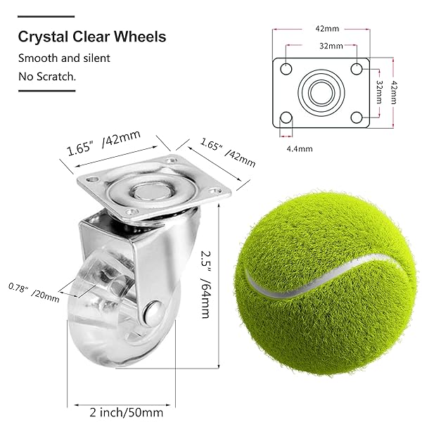 - 4 Pack Swivel Caster Wheels for Furniture, 2 Inch Heavy Duty Castor Wheels, Crystal Clear Polyurethane Rolling Castors with 360 Degree Plate for Cabinet,Ottoman,Bench (Not for Chair Legs) offers reliable performance and quality