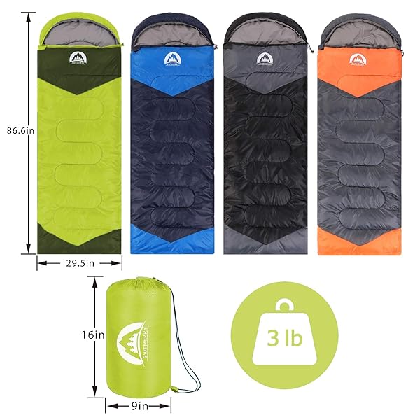 - SWTMERRY Sleeping Bag 3 Seasons (Summer, Spring, Fall) Warm & Cool Weather - Lightweight,Waterproof Indoor & Outdoor Use for Kids, Teens & Adults for Camping Hiking, Backpacking and Survival (Green) offers reliable performance and quality- DESIGNED FOR COOL AND COLD WEATHER - Our sleeping bags have a waterproof, weather-resistant design to keep you warm even in extreme conditions - this is achieved through double-filled technology