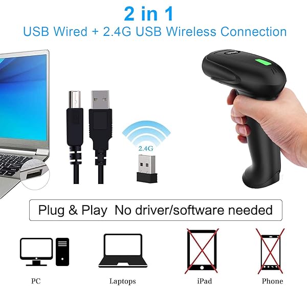 - USB Wireless Barcode Scanner with Stand,Symcode Barcode Scanner Versatile 2-in-1 (2.4Ghz Wireless+USB 2.0 Wired) Rechargeable Cordless 1D Barcode Reader Handheld Bar Code Scanner Wireless offers reliable performance and quality