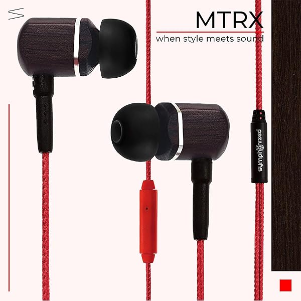 - Symphonized MTRX Premium Genuine Wood In-ear Noise-isolating Headphones with Mic and Nylon Cable (Red) offers reliable performance and quality- HANDCRAFTED FROM ALL NATURAL GENUINE WOOD: Symphonized in-ear noise isolating headphones are handcrafted from real wood, allowing for a natural sound profile consisting of crisp highs and deep bass