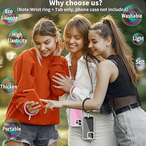 - TACOMEGE Silicone Ring Phone Lanyard for Most Smartphones Cases (with Anchor), Soft Phone Loop Wrist Strap for Women (Black): reliable performance and quality- Premium material: Made of environmentally friendly silicone,- Wrist Loop function: Silicone circle inside diameter of 2.83inches,- Wide range of uses: it is not just a phone loop, but also a bracelet,- Widely Compatible: This round silicone cell phone wristlet is