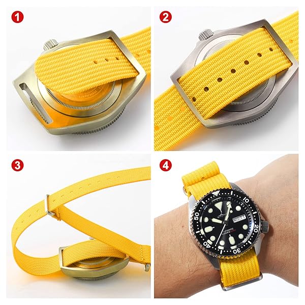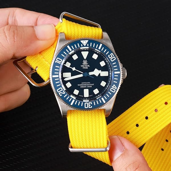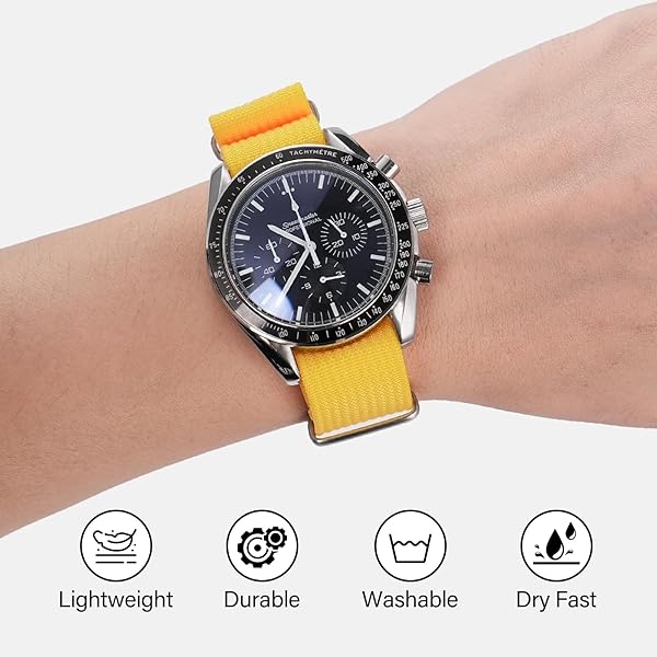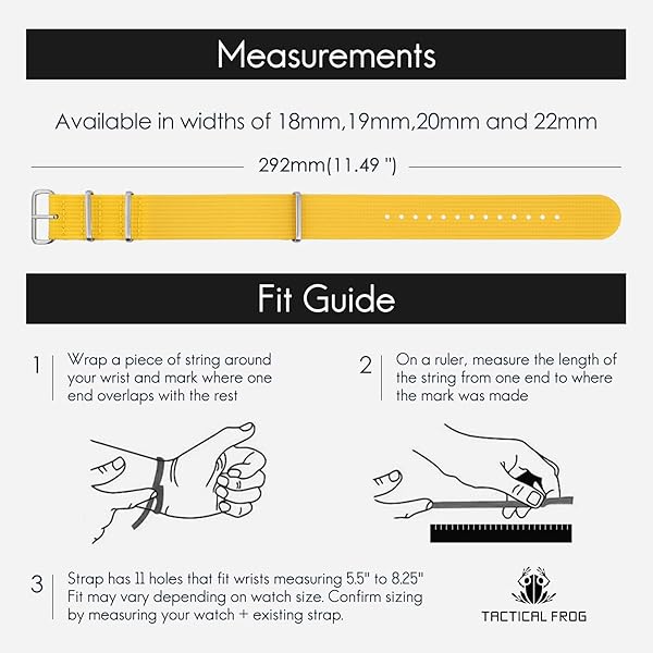 - TACTICAL FROG Nylon Watch Band 18mm 19 mm 20mm 22 mm 24 mm, Waterproof Military Watch Straps Replacement for Men Women, With Stainless Steel Buckle (Yellow, 22mm) with reliable performance and quality- Waterproof and Breathable: Our nylon watch band measures 1 mm thick, lightweight and breathable for all day comfort. Dirt and Wet resistant features allow you to enjoy yourself while doing fitness, swimming or climbing- Laser Cut and Durable: Made of high density nylon and 31