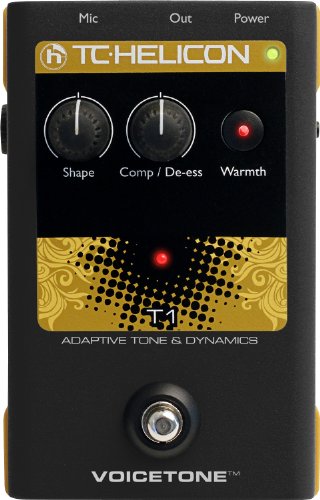 - TC Helicon VOICETONE T1 Single-Button Stompbox for Studio Mastered Vocal Tone offers reliable performance and quality- Studio vocal tone without the hassle- High quality multi-band EQ- Smoothing compressor & De-Esser- Chains to additional VoiceTone singles