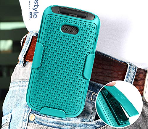 Teal Mint Cyan Case with Clip for Alcatel Smartflip Go Flip 3 Snap-On Cover and Rotating Belt Holster Holder 2019 Model