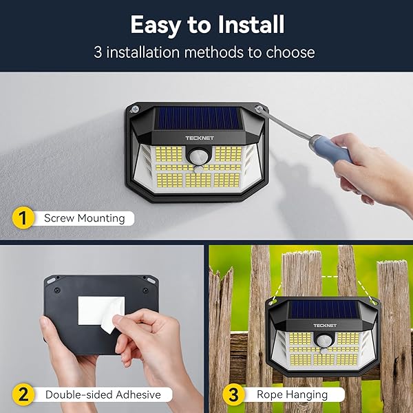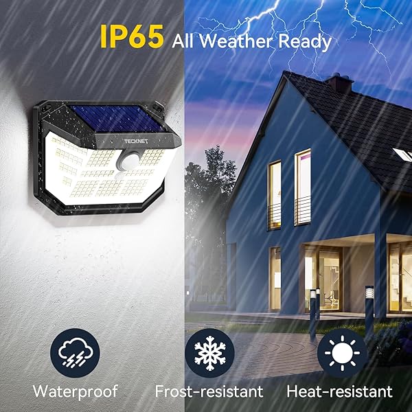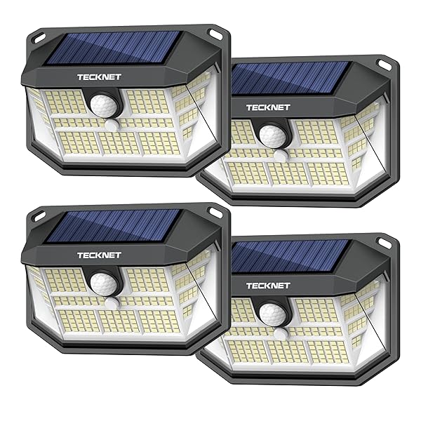 - TECKNET 231 LED Solar Motion Lights Outdoor Waterproof, 4 Pack 300 Angle & 3 Lighting Modes PIR Motion Sensor Security Solar Wall Lights IP65 for Fence Front Door Yard Deck Garden Garage: reliable performance and quality- High-Efficiency Solar Panel:TECKNET environmentally- 231 LEDs Enhanced Brightness: TECKNET motion lights- 3 Lighting Modes: TECKNET solar motion lights outdoor- Advanced PIR Sensor: The solar powered outdoor lights