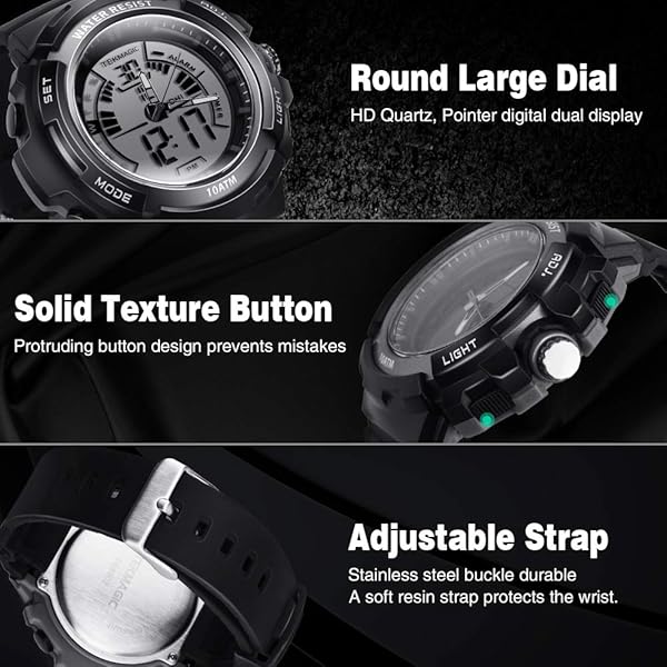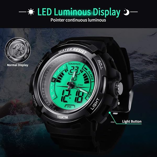 - TEKMAGIC 10 ATM Luminous Waterproof Digital Diving Watch with Stopwatch and Alarm Functions, Support Dual Time Zone Display, Analog and Digital Movements, 12/24 Hours Format offers reliable performance and quality