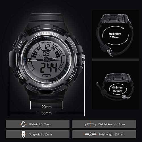 - TEKMAGIC 10ATM Waterproof Digital Scuba Diving Watch 100m Underwater for Swimming and Running with Stopwatch and Luminous LCD Display Built-in offers reliable performance and quality- Can work or be operated up to 100m underwater with 10 atm water resistant grade, suitable for swimming, snorkeling, scuba diving or other water activities- Chronograph, countdown, dual time zone, alarm and hourly chime functions were built-in