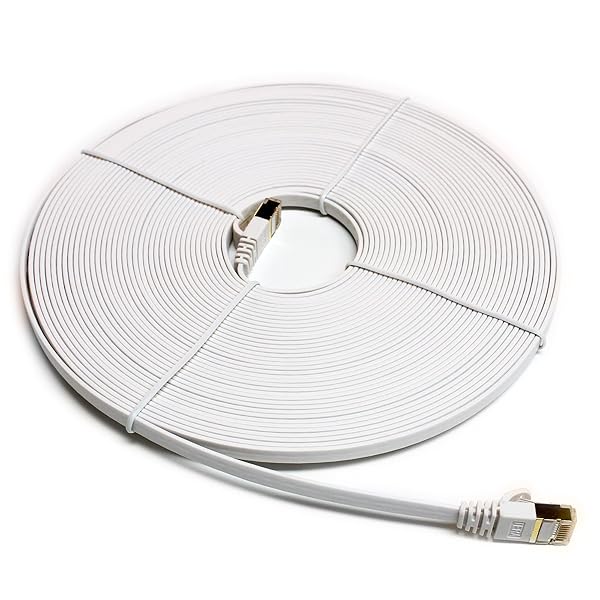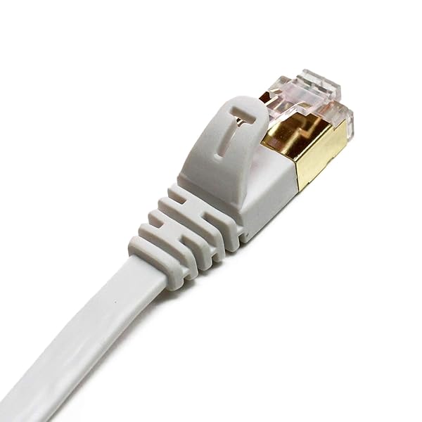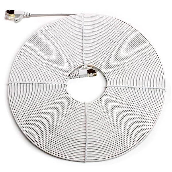 - Tera Grand - 50FT - CAT7 10 Gigabit Ethernet Ultra Flat Patch Cable for Modem Router LAN Network, Gold Plated Shielded RJ45 Connectors, Faster Than CAT6a CAT6 CAT5e, White offers reliable performance and quality- ULTRA FLAT - CAT-7 10 Gigabit Ultra Flat Ethernet cable, slim and flexible, easy to fit into the tightest spaces